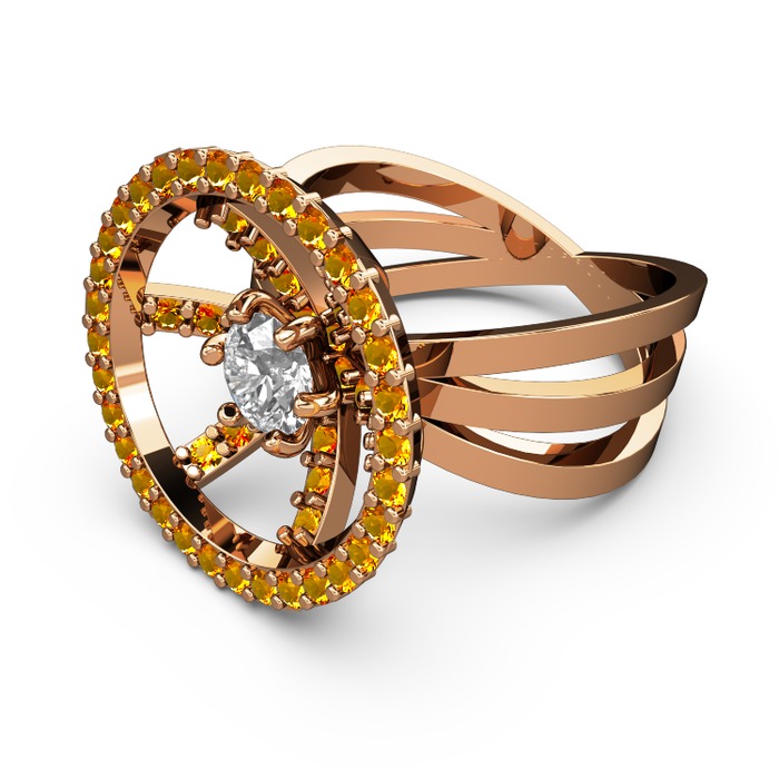 Sitrin ve pırlanta 8 ayar rose altın yüzük (0.855 karat)
