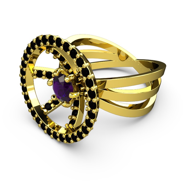 Siyah zirkon ve ametist 14 ayar altın yüzük