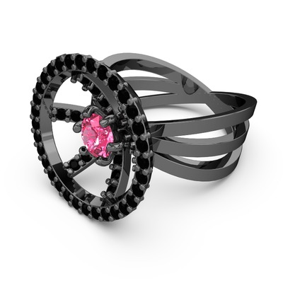 Siyah zirkon ve pembe kuvars 925 ayar siyah rodyum kaplama gümüş yüzük