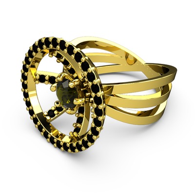Siyah zirkon ve peridot 925 ayar altın kaplama gümüş yüzük