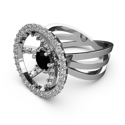 Swarovski ve siyah zirkon 14 ayar beyaz altın yüzük