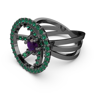 Yeşil kuvars ve ametist 925 ayar siyah rodyum kaplama gümüş yüzük