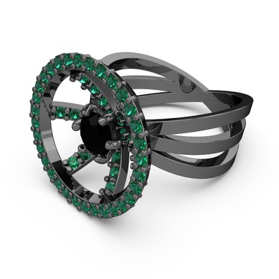 Yeşil kuvars ve siyah zirkon 925 ayar siyah rodyum kaplama gümüş yüzük