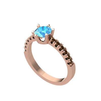 Akuamarin ve dumanlı kuvars 14 ayar rose altın yüzük