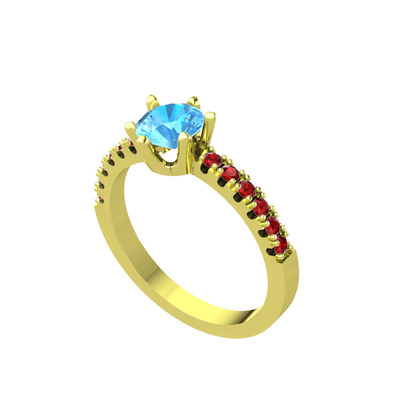 Akuamarin ve garnet 925 ayar altın kaplama gümüş yüzük