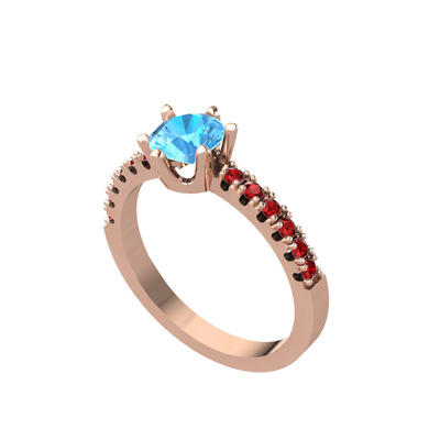 Akuamarin ve garnet 925 ayar rose altın kaplama gümüş yüzük