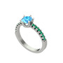 Akuamarin ve kök zümrüt 14 ayar beyaz altın yüzük