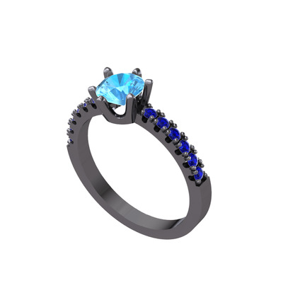 Akuamarin ve lab safir 925 ayar siyah rodyum kaplama gümüş yüzük
