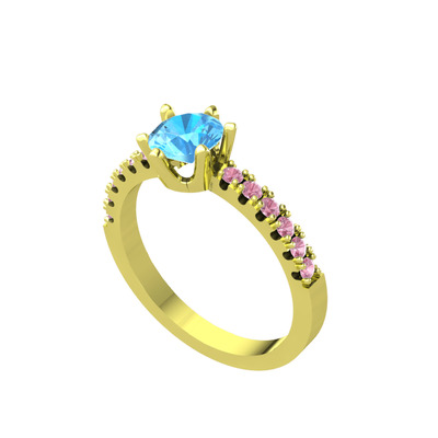 Akuamarin ve pembe kuvars 14 ayar altın yüzük