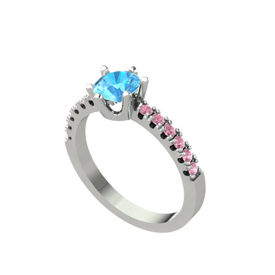 Akuamarin ve pembe kuvars 14 ayar beyaz altın yüzük