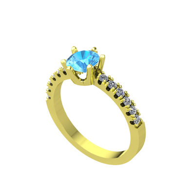 Akuamarin ve pırlanta 8 ayar altın yüzük (0.24 karat)