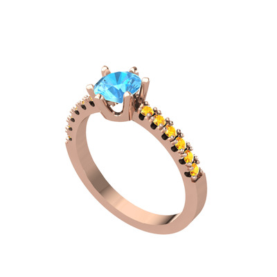 Akuamarin ve sitrin 8 ayar rose altın yüzük