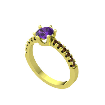 Ametist ve dumanlı kuvars 14 ayar altın yüzük