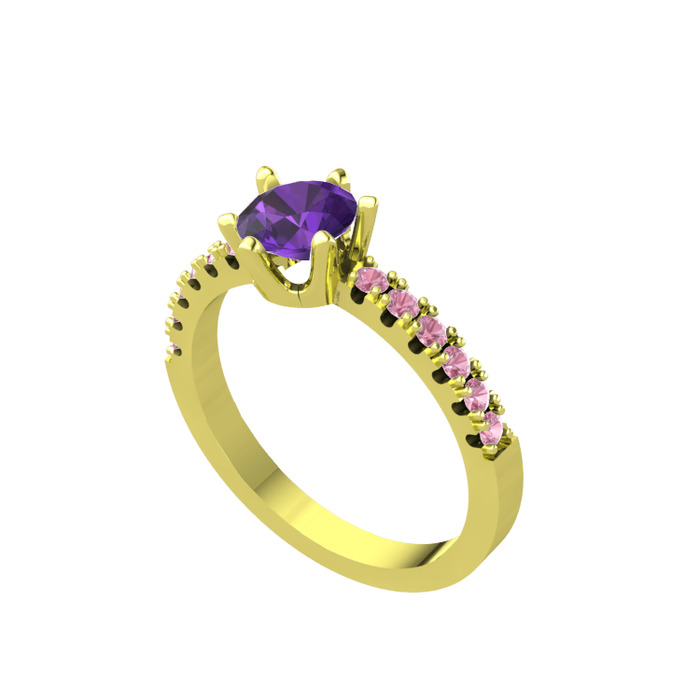 Ametist ve pembe kuvars 14 ayar altın yüzük