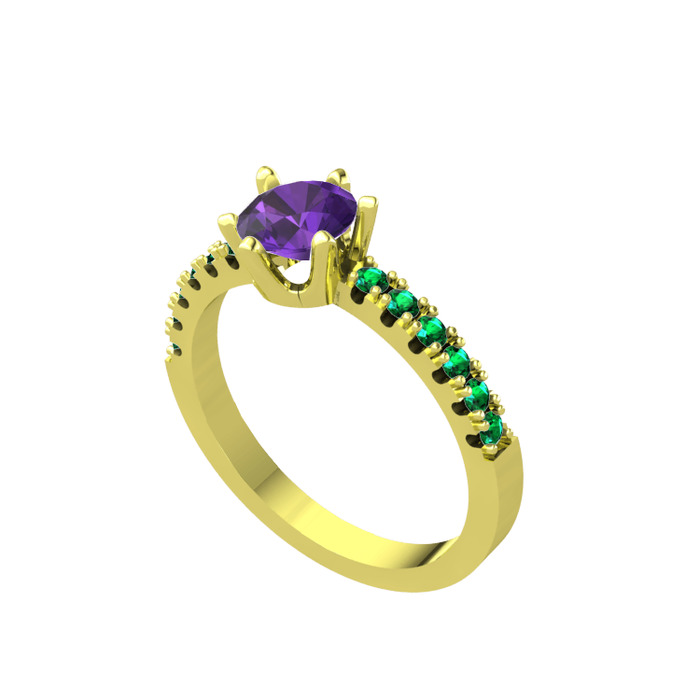 Ametist ve yeşil kuvars 925 ayar altın kaplama gümüş yüzük