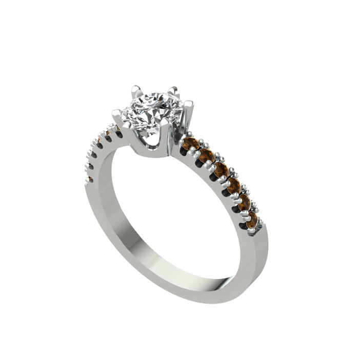 Beyaz zirkon ve dumanlı kuvars 925 ayar gümüş yüzük
