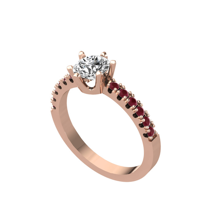 Beyaz zirkon ve kök yakut 18 ayar rose altın yüzük
