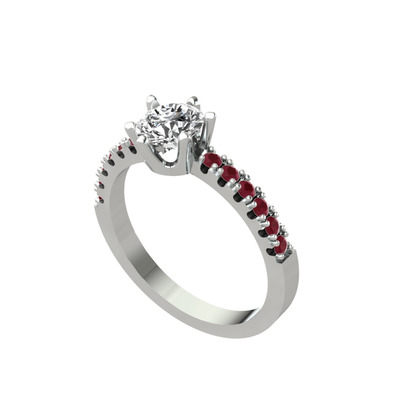 Beyaz zirkon ve kök yakut 8 ayar beyaz altın yüzük