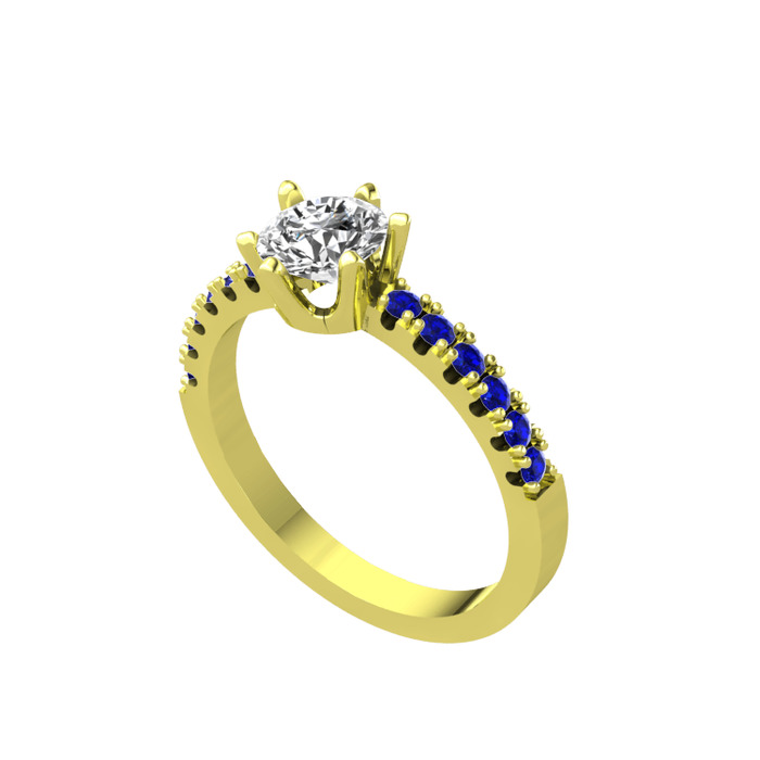 Beyaz zirkon ve lab safir 18 ayar altın yüzük