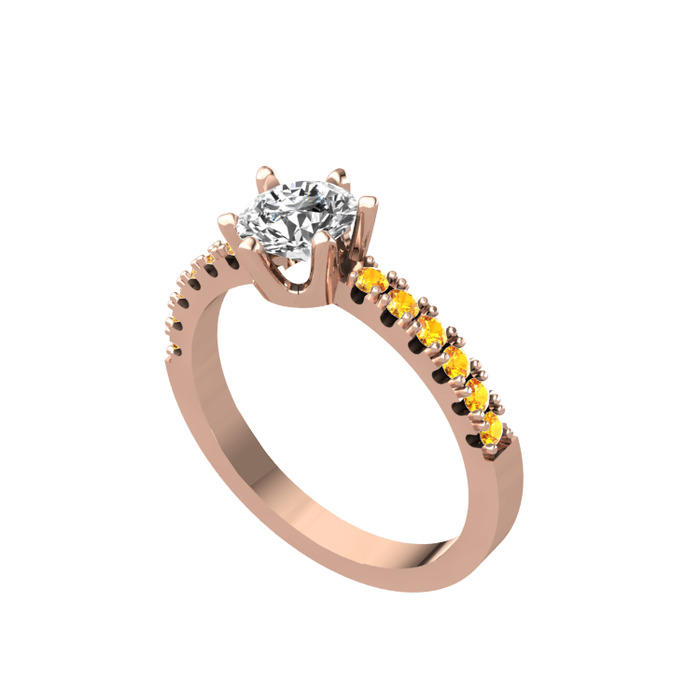 Beyaz zirkon ve sitrin 14 ayar rose altın yüzük