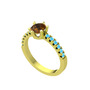 Dumanlı kuvars ve akuamarin 18 ayar altın yüzük