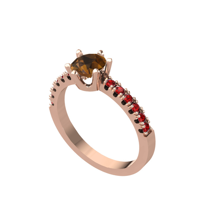 Dumanlı kuvars ve garnet 14 ayar rose altın yüzük