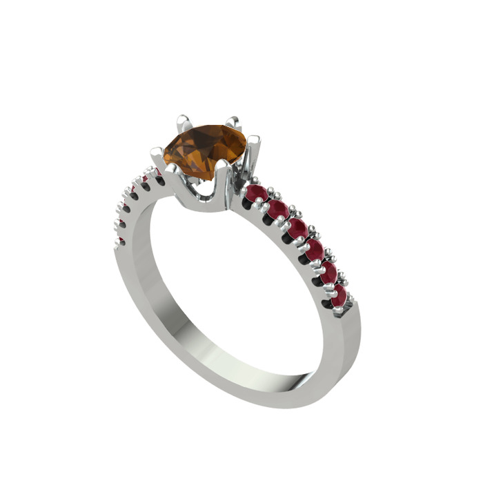 Dumanlı kuvars ve kök yakut 14 ayar beyaz altın yüzük