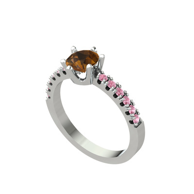 Dumanlı kuvars ve pembe kuvars 14 ayar beyaz altın yüzük