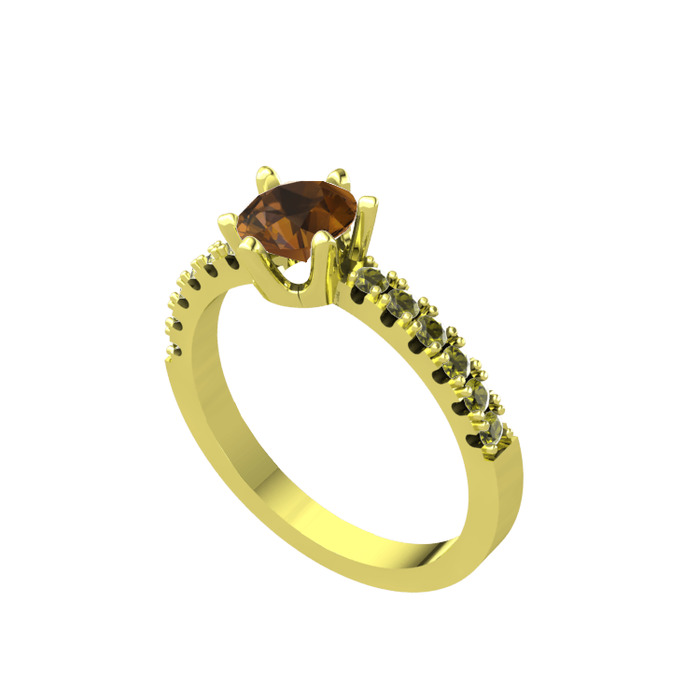 Dumanlı kuvars ve peridot 14 ayar altın yüzük