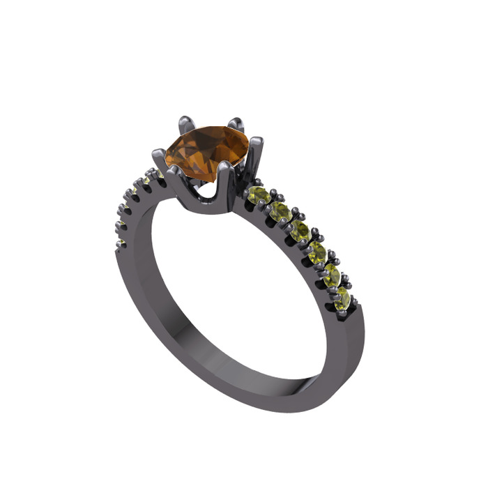Dumanlı kuvars ve peridot 925 ayar siyah rodyum kaplama gümüş yüzük