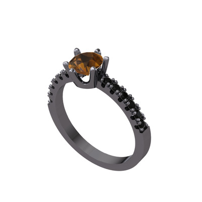Dumanlı kuvars ve siyah zirkon 925 ayar siyah rodyum kaplama gümüş yüzük