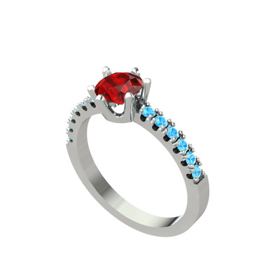Garnet ve akuamarin 14 ayar beyaz altın yüzük