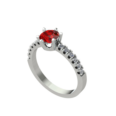 Garnet ve pırlanta 14 ayar beyaz altın yüzük (0.24 karat)