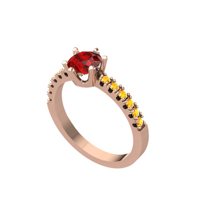 Garnet ve sitrin 18 ayar rose altın yüzük