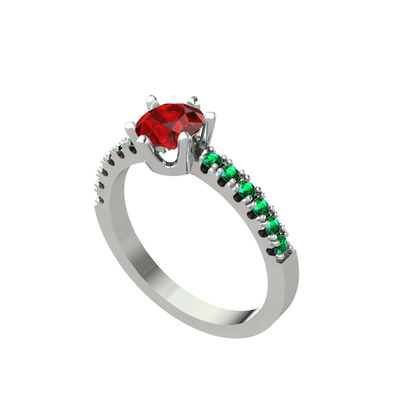 Garnet ve yeşil kuvars 14 ayar beyaz altın yüzük