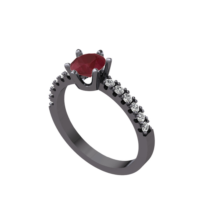 Kök yakut ve beyaz zirkon 925 ayar siyah rodyum kaplama gümüş yüzük
