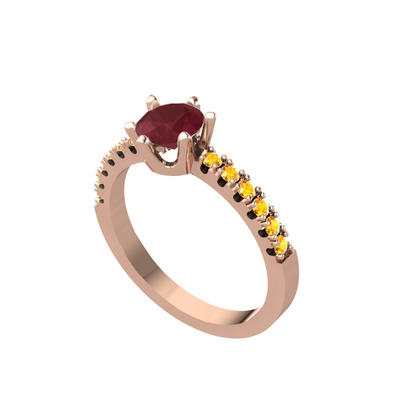 Kök yakut ve sitrin 14 ayar rose altın yüzük