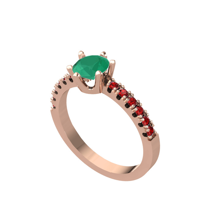 Kök zümrüt ve garnet 925 ayar rose altın kaplama gümüş yüzük