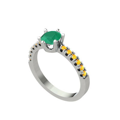 Kök zümrüt ve sitrin 14 ayar beyaz altın yüzük