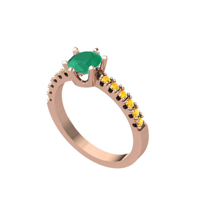 Kök zümrüt ve sitrin 925 ayar rose altın kaplama gümüş yüzük