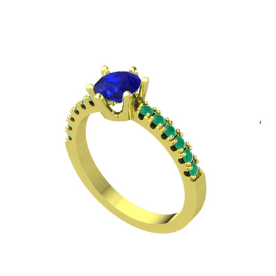 Lab safir ve kök zümrüt 8 ayar altın yüzük