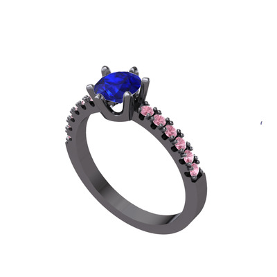 Lab safir ve pembe kuvars 925 ayar siyah rodyum kaplama gümüş yüzük
