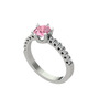 Pembe kuvars ve beyaz zirkon 18 ayar beyaz altın yüzük