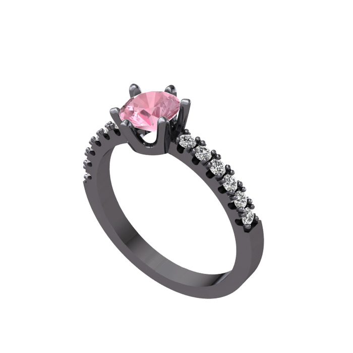 Pembe kuvars ve beyaz zirkon 925 ayar siyah rodyum kaplama gümüş yüzük