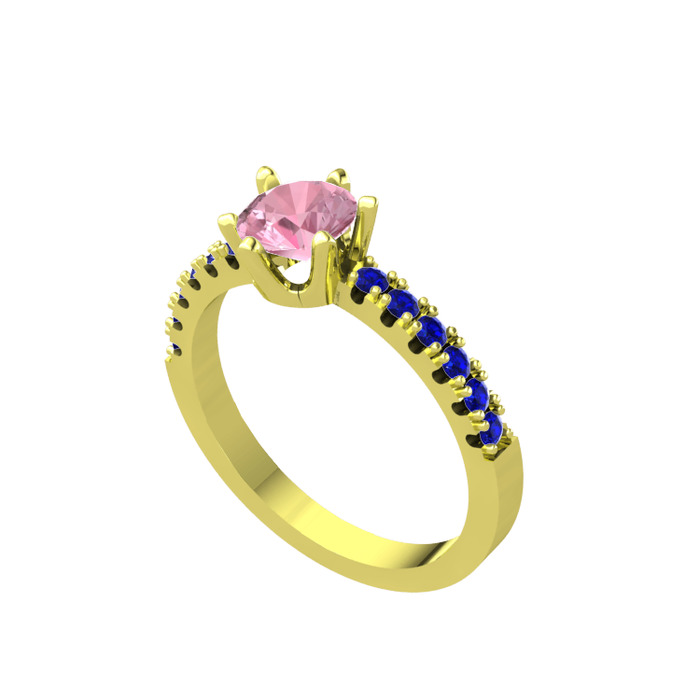 Pembe kuvars ve lab safir 14 ayar altın yüzük