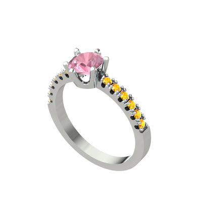 Pembe kuvars ve sitrin 14 ayar beyaz altın yüzük