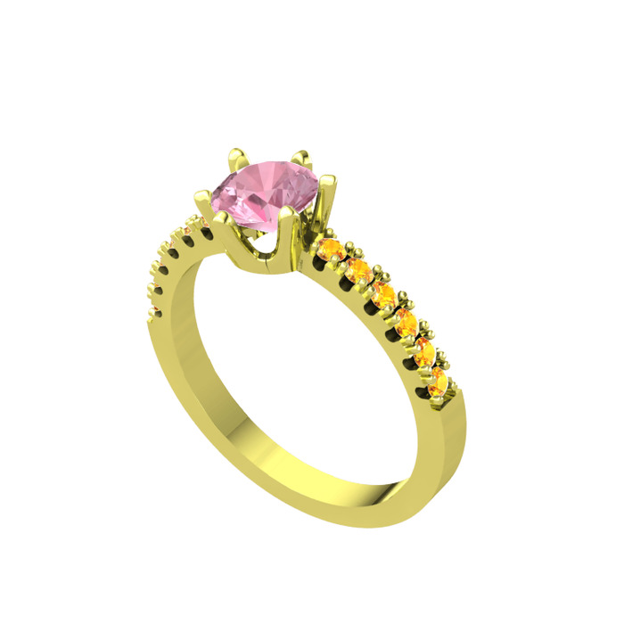 Pembe kuvars ve sitrin 18 ayar altın yüzük