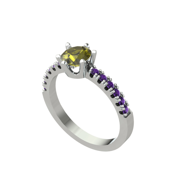 Peridot ve ametist 14 ayar beyaz altın yüzük