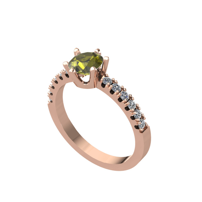 Peridot ve pırlanta 8 ayar rose altın yüzük (0.24 karat)