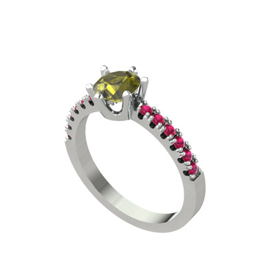 Peridot ve rodolit garnet 14 ayar beyaz altın yüzük